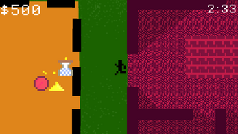 You're a thief doing one last heist before you retire - grab as much loot as you can to go out with a bang! Get your loot to the pick up stop - the more you carry, the slower you move. Do you go for the smaller cheap items or risk it for the bigger items.